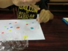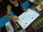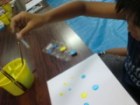 低いところからポタ・・・高いところからポタン・・・もっと高〜いところからポッタ〜ン。絵の具で遊びました。