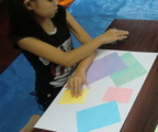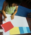 まずは下地作りから。色画用紙などを選んで自由に配置していきます。