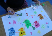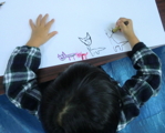 最近、驚愕の展開というか、「おおっ!!」という面白い展開を見せてくれるこどもたちがやや少なくなったような(あくまでもやや、ややです)、そんな気がしています。「あと何描いたらいい?」「さあ〜」「これでいい?」「まだまだ」「これでいい?」「もうひとおし」「これでいい?」「もっとかんがえて」・・・無難に仕上げようなんてせずに、もっともっと絵の中で遊んでごらん。「これでいい?」なんて言葉は出ないはず。