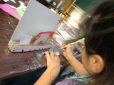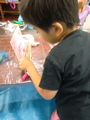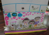 前にあるもの、中間にあるもの、後ろにあるものを考えて、いろんな空間を作りました。取り替えも移動もOKなので、遊びながらどんどん作っていくことができます。あ、もちろん中途半端なところ?にあるものも、しっかり考えてこの世界を楽しい空間に♪