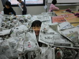 じぃ〜っとして描く、その前に、ちょ〜っと新聞であそびました。