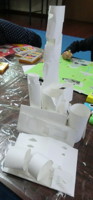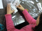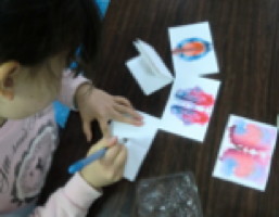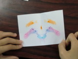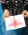 で、まずはデカルコマニーです。これはあすかちゃん(小5)が考えたbefore and after。