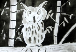 こちら、左はかなたくん(小3)、右はゆうたろうくん(小4)、濃淡を細かく使い分けたミミズクくんたちです。