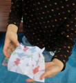 で、まあ紙染めをするときは、紙を開くときね、わたしと同じようにナイーブなので、そ〜〜っとそ〜〜っと開きましょう。
