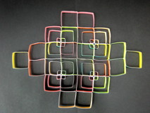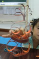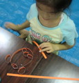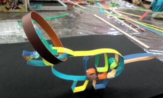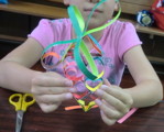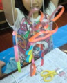 色画用紙を帯状に切りましょう・・・と思ったら、こんな便利なものがあるんですね。世間知らずでした。カラードテープなるものを使いまして楽しい工作です。楽しいといえば・・・