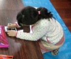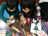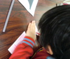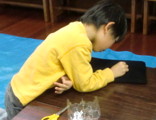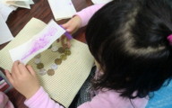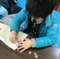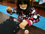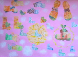 素材をいくつか用意しましたが、やっぱり硬貨は盛り上がります。フロッタージュした紙を使って、テーマ自由のコラージュです。ちょっと驚いたのが、先日の「図と地」をからめながら制作しているらぴすっこ。あぁ〜なんか、やってよかったなぁ・・・♪