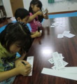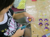 さて、先週の水曜クラス、教室終了5分前ぐらいに「来週はプレゼント用のお花つくるよ〜」って予告をしてみました。「あっ!じゃあお花屋さんする!!」って何を始めたかと思うと、みんなでお店で使うお金を作りはじめました。・・・おいおい・・・帰る用意しなきゃ・・・