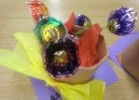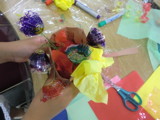 みんながちょくちょく持って来てくれる卵パックを使って、今日はお花屋さん気分、フラワーアレンジメントです。