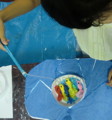 使っても使ってもなくならないお花紙でおさかなを作りました。そうそう、先日の画像で月曜クラスさんが、盛り上がっていたのは、この魚釣りであります。