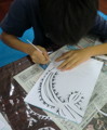 高学年はデザインカッターで切り絵です。曲線だってデザインカッターならスルスル切れちゃいます。でも調子にのってきたころが危ない危ない、油断せずに落ち着いていきましょう。