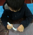 さて、クリスマス特集その1は、リース。これはオーナメントを作っているところ。画像は既視感ありありですが、全然違う素材、あれとあれを組み合わせています。