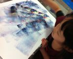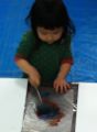 「できた?」「まだ」「もうちょっと」「もうひとつ色使おうっと」「あっ!ここ綺麗!!」「え?それ何色使ったん?」「これとこれ混ぜたらどうなるかな?」「あぁっ!!こんな模様になった!」水曜クラスのらぴすっこさんたちの声です。