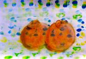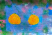 三宝柑でございます。左から力一杯ワイルドに描いたおうたくん(5才)、丹念に丹念に塗り込んだゆうとくん(小1)、透け感がエレガントなえれなちゃん(小5)の作品です。