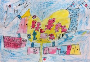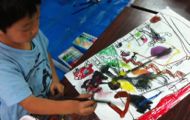お家というものは・・・安全で健やかに楽しく暮らせる場所でなければ・・・てなことを念頭に、いろんなお家、いろんなお部屋を考えてもらいました。ゴールデンウィーク中、みんな別世界に行っていたのか、小さならぴすっこさんたち、なぜか絵の具の使い方がぎこちなく・・・まっ、そんなこともあるか〜。 まっ・・・わたしもある意味別世界でこき使われ・・・頭を切り替えるのにちょい時間かかりました・・・勘弁してくれよ〜〜〜・・・あ、でも今日一応成果はあったことを確認できて・・・ヤレヤレ