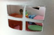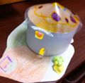 こちらはえみるちゃん(4才)のお家。黄色の床にしたせいか、まるで灯りをつけたように、お部屋の中がほんわか明るく見えます。彼女はこの後、外壁にも粘土で飾りをたくさんつけて持って帰りました。