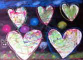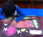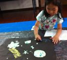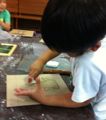 左から、なんと仕掛け付き額縁のたくまくん(小1)、細かい所まで丁寧に丁寧に作ったはるかちゃん(小4)、小さな身体で迫力の大木、かずなちゃん(4才)作品。