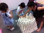 あ、わたし「ピラミッドつくりましょう」なんて一言も言ってませんよ。た〜っくさんの紙コップを前に、自分たちで考えて始めました。