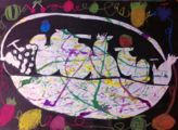 新聞や色画用紙をチョキチョキチョキチョキ・・・