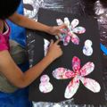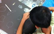 画用紙を切り抜いて・・・前回のビー玉画用紙に重ねてみました。