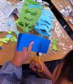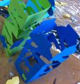 新聞や色画用紙をチョキチョキチョキチョキ・・・