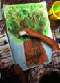 スポンジで絵の具をぽんぽんぽんぽんスタンピング。重ねれば重ねるほど深みを増して面白い効果が発見できるかも。