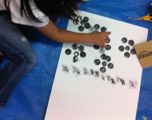 スタンピングって幼児にはもってこい・・・かと思えばそうでもなく、素材によるところが大きいことを再認識しました。小学生たちは「なんでもこいっ!!」って感じでいろいろ押し方を工夫してやっていましたが、幼児は簡単にペタペタ押せないと飽きてしまうようです。ん〜〜、今回は今まであまり使わなかった素材を用意したのですが・・・細かいものも多くて、ちょっと難しかったかな?