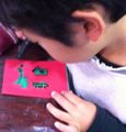 塩ビ端材を使って透けるクリスマスカードでございます♪