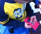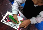 ば〜ったばたの年末。クリスマスカードもおさるさんも来年持って帰るってわけにもいかず、わ〜わ〜言いながら、出来立てほやほやをみんな持って帰りました・・・が災いしまして、帰宅途中に崩壊したという報告もあり・・・うぅ・・・転じて福となりますように。