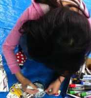 カラフルな作品が次々生まれるなか、色味を抑えた・・・いや、じ〜〜っとみると、不思議な色がた〜〜くさん浮かび上がってくるひまりちゃん(小6)の作品です。