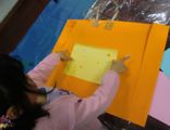 「どうしたらいいん?」「ん?作品が入れたり出したりできて、手に提げて持って帰れれば、どんな風にしてもいいよ?」「でも・・・どうしたらいいん?」「ま、ゆっくり考えてごらん。失敗してもなんとかなるから。」・・・と言ったものの、入会して間もない小さい小さいらぴすっこさんもいるので、一番簡単な作り方は紹介しました。でもやっぱり考えてほしい。考えることを楽しんでほしい。そう思います。