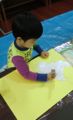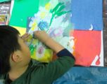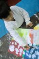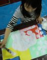 刷毛に白の絵の具をたっぷりつけて、どば〜〜〜〜っと大まかなカタチを描いて・・・そうそう細かいことなんて今は気にしない・・・今はね。絵の具をよ〜く乾かして・・・するとね、「描けな〜い」「難し〜い」って言っていたひとも白くんに助けられながら、今度はクレパスでグイグイ描き始めました。