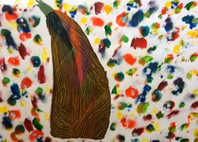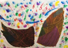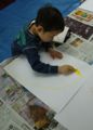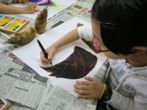 「せんせぇ、マッチ軸の続きやろっ!?」と弾む声・・・「あ〜、いやいや、あれはちょっと後にして、今日は描くよ。」「え〜〜・・・」・・・ほぉ〜〜マッチ軸がこんなにヒットするとは・・・。でもタケノコが新鮮なうちにやんないとね。旬ですよ、旬♩♩♩このスクラッチも大きい画用紙でするとたいへん。でも、みんなゴシゴシしっかり塗りこんで・・・「うわ〜〜〜きれ〜〜い」と楽しんでくれたようです。