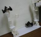 明治の終わりにできた新世界には、北に高さ75Mの通天閣、南に高さ約40Mのホワイトタワーというふたつの塔があり、このふたつの塔をロープウェイが行き来していた・・・そうです。これを知ったのはごく最近。なんだかすご〜く楽しそう〜、楽しかったんだろうなぁ〜などと想像しつつ、通天閣のしりとり歌を歌ったりしながらの工作です。「ダイヤモンド高い〜高いは通天閣〜・・・」どうなることやら〜〜♪♪♪