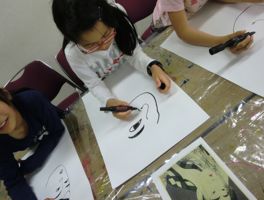 模写です。前回はマネさんの真似をしたのですが、今回は浮世絵。歌舞伎役者さんに挑戦です。そんなわけで気分を盛り上げるために歌舞伎の台詞なんか言ってもらったり・・・これは「やるやる〜」とノリノリでやってくれるひともいれば、「え〜〜〜、そんなんいやや〜」と恥ずかしがるひとも。ま、それぞれなので無理強いはしません。ちなみにわたしは意外にも前者です。