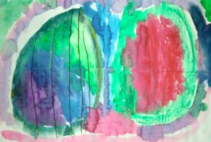タマネギをよぉ〜〜〜く見ながら、いきなり絵の具を刷毛でドバ〜〜〜〜ッと。大迫力のタマネギが生まれそうです。