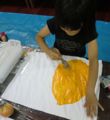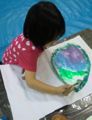 タマネギをよぉ〜〜〜く見ながら、いきなり絵の具を刷毛でドバ〜〜〜〜ッと。大迫力のタマネギが生まれそうです。