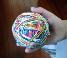 そしてこちらは先日の輪ゴム。一旦家に持って帰ったあやとくん(小2)は、お母さんに輪ゴムを買ってもらって、巻いて巻いて巻いて・・・また教室に持ってきてくれました。こちらもずっしりと迫力ありました〜〜〜。