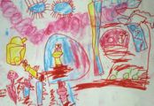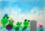 さて、左からさくしくん(4才)、かずなちゃん(5才)のケロケロカエルワールド。「カエルむずかし〜」といいつつ、楽しげに描いてくれました。