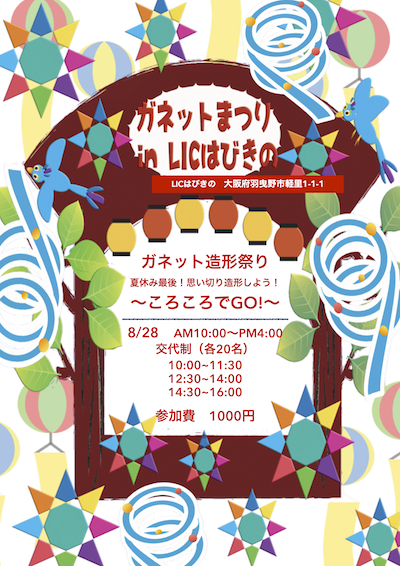 ガネット造形まつりのお知らせです。定員がありますので、ご予約はお早めに♪♪♪
