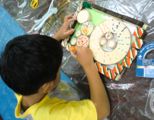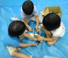 これを仕掛けに何か作ろうとするなら強度にも精度にも欠けますが、「なんちゃってギア」、みんな楽しんでくれているようです。どうしたらまわって、どうしたらまわらないのか、小さい小さいらぴすっこさんたちも、あ〜だこ〜だやっているうちに、なんとなぁ〜くわかったみたい。今後のきみたちの創造の仕掛け(きっかけ)になることを期待してるよっ♪