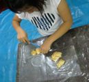 実はひとつ謎がありまして・・・水彩絵の具で好きな色のスライムを作ったのですが・・・右端の画像、なに色となに色を混ぜたと思いますか?水を加えて混ぜ合わせたときには予想通りの色だったのです。しかし、洗濯のりを混ぜたとたん、こんな色に。たしかに数年前もまったく同じ現象がありまして、メーカーさんにもついでの時にちらっと相談しまして、「???」という回答だったのです。その後、日を改めてもう一度検証しますと、こんな色にはならなかったので、「あら?気のせい?知らないうちに何か混ざっちゃったのかな?」・・・とうやむやにしてすっかり忘れておりました。が、一昨日しっかりもののゆうとくん(小2)にこの現象が起こりまして・・・。さて、ご存知の方がいらしたら教えていただけないでしょうか・・・で、なに色となに色を混ぜたのでしょ〜〜〜〜〜〜ぉかっ?