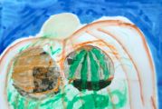 予定をまだ消化できていないのに、番外編をぶっこんでしまったらぴすです。左はにこうくん(小4)の作品。難しく考えすぎて頭を抱え込んでいた彼ですが・・・暗礁に乗り上げた???と思っていたら、最後の最後に弾けてくれました。弾けた瞬間の開放的な笑顔、とってもよかったです。右は月曜クラス最年少さくしくん(4才)の作品。この日一番の集中力でがんばりました。最後の最後にこちらは「つかれたぁ〜」とぽつり。