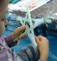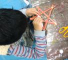 割り箸で作った星形に糸を巻き付けていきました。〜絡んでも絡んでも落ち着いて〜なんてサブタイトルをつけたのに・・・なに?この落ち着き・・・あれ?あれ?あれ?想定外だ・・・おっと、失礼。