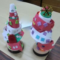 今日はクリスマス会。ミニ工作では、ざっくりとした説明の後、ツリーを作りました。すみません、かなり焦ってしまい、説明が足りず、几帳面なひとほど難しかったかもしれません。「ざっくりでいいんだ。ざっくりでいいんだ。」を強調すべきでした。