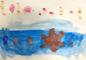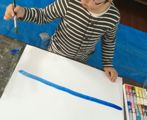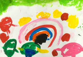 こちら左が、意外にも(失礼!)慎重に慎重にじっくり描いたつばきちゃん(3才)の作品。右が、いち早くキーワードをとらえたこうたろうくん(5才)の作品。