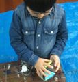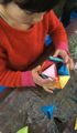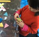 3というのはなかなか収まりが良いようで・・・「いち・に・さん いち・に・さん」でワルツでしょ、「いち・にぃのぉ・さんっ」って、何かの掛け声だったり・・・、先月ちょっとお話したのですが、橋やらタワーやらお家やらにも三角形が多く使われています。でね、先月は平面で三角形を使ったんですが、今回は立体に挑戦!!三角錐(四面体)です。水曜クラスは時間帯が早めってこともあって、小さいらぴっすこさんが多いです。一番上で2年生という強者ぞろい(ってなんだその言い方はっ)、「わかれへぇ〜〜ん!できへぇ〜〜ん!」って怒号(?)が飛び交うんじゃないか・・・と、ちょっと心配してました(ってなんだその言い方はっ)。いやいやすみません。たいへん失礼しました。みんなぁ〜♪なかなかやるじゃんっ♪(ってなんだその言い方はっ)