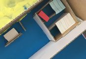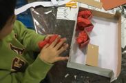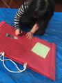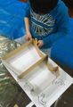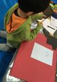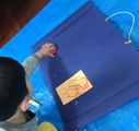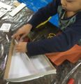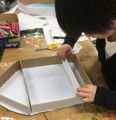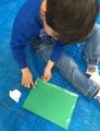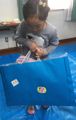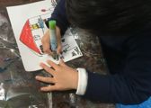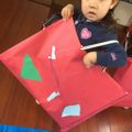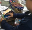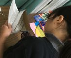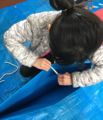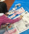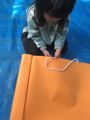 年度末は作品収納バッグ作り。展覧会で使った大きな大きな画用紙で作ります。