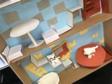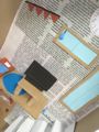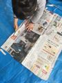 「インテリア・・・」が途中のひとも結構いるのですが、今日はお休みのひとも多く、ちょっと気分をかえて新聞で遊びました。これまた考えなきゃならんのですが・・・「この新聞紙一枚をハサミだけ使って、この部屋の端から端まで届くぐらいなが〜〜〜〜〜くしてみてください。」