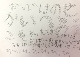 で、めでたくそれぞれなが〜〜〜〜〜くできまして、そのあとは、つないでつないでつないでつないで・・・なぜかせんせぇから離れて階段で作戦会議。「おばけのせかい」に招待されました。
