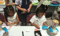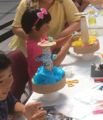 ここで告知する間もなく、あっという間に応募は定員に達し、抽選になった・・・そうです。クルクル廻る水族館を作りました。今年は絵画教室ネットワークGa-netとして、堺市の子ども造形絵画ポテトクラブさん、淀川区のキッズクラフトさん、東住吉区の子どもデザイン教室さん、それから親切な若者2名と参加しました。